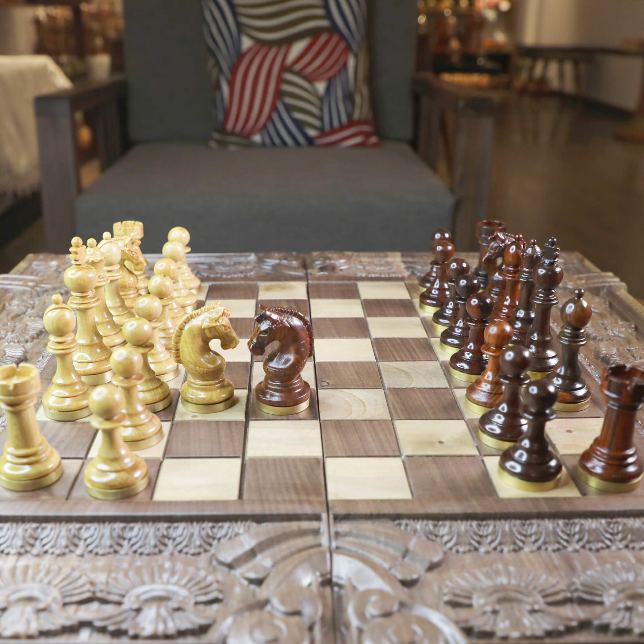 Một trong số những bộ cờ đắt hàng được bán chạy nhất tại Henry Le Chess. Nó là sự kết hợp đẳng cấp giữa hai tông màu sáng và tối tạo nên sự nổi bật trên bàn cờ mang lại cảm giác cuốn hút đối với mọi người.